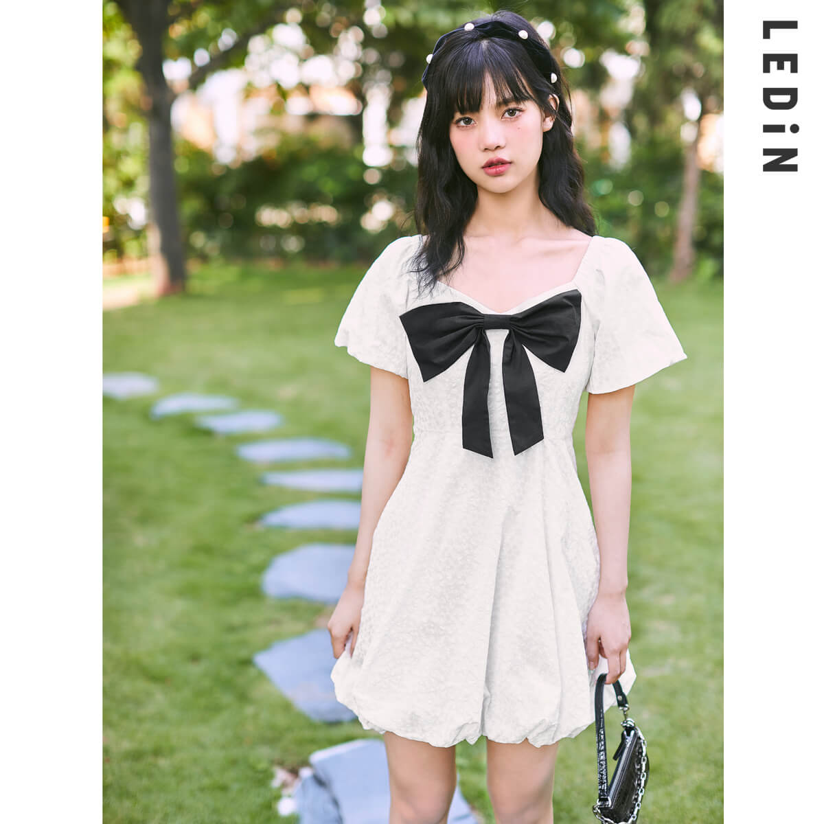 5分鐘前氣質水冰月連衣裙2021新款春蝴蝶結連衣裙方領茶歇裙 - 套餐一 1入-NT$1099