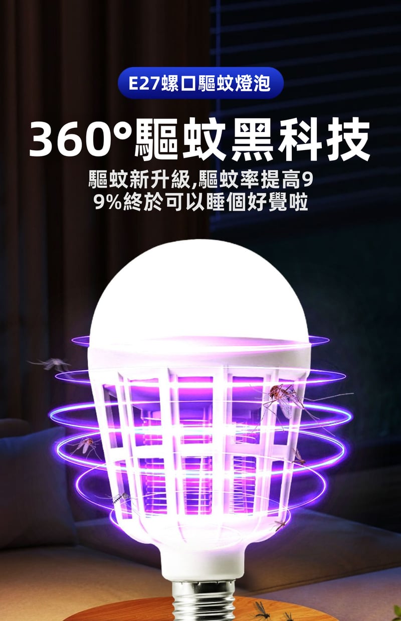 4分鐘前限時搶購 LED照明滅蚊燈E27螺口一擰即裝,UV紫光誘蚊,節能LED無頻閃,護眼超安全,居家戶外兩相宜 - 5入組-[均價299】NT$1499